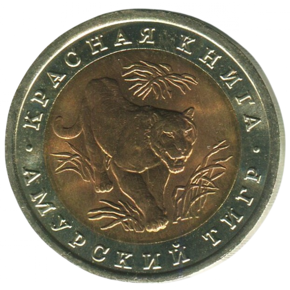 Монета, 10 рублей 1992, Красная книга, Амурский тигр