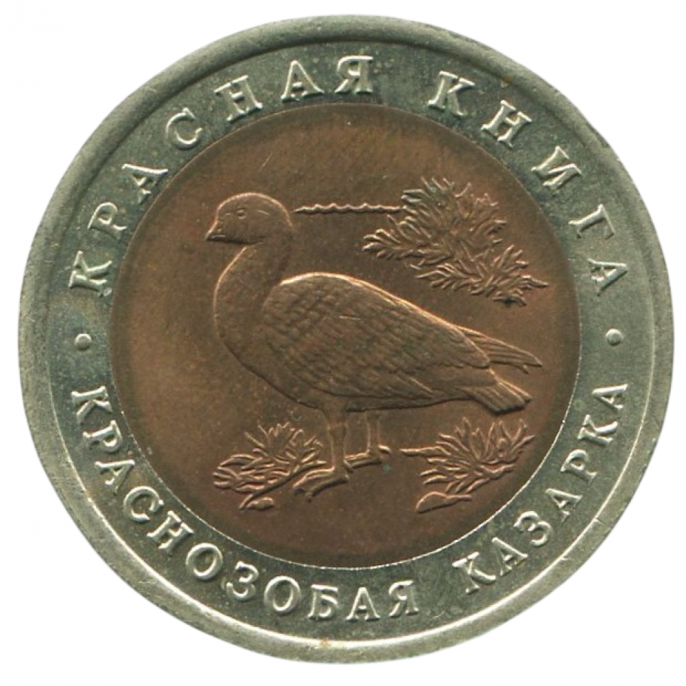 Монета, 10 рублей 1992, Красная книга, Краснозобая казарка
