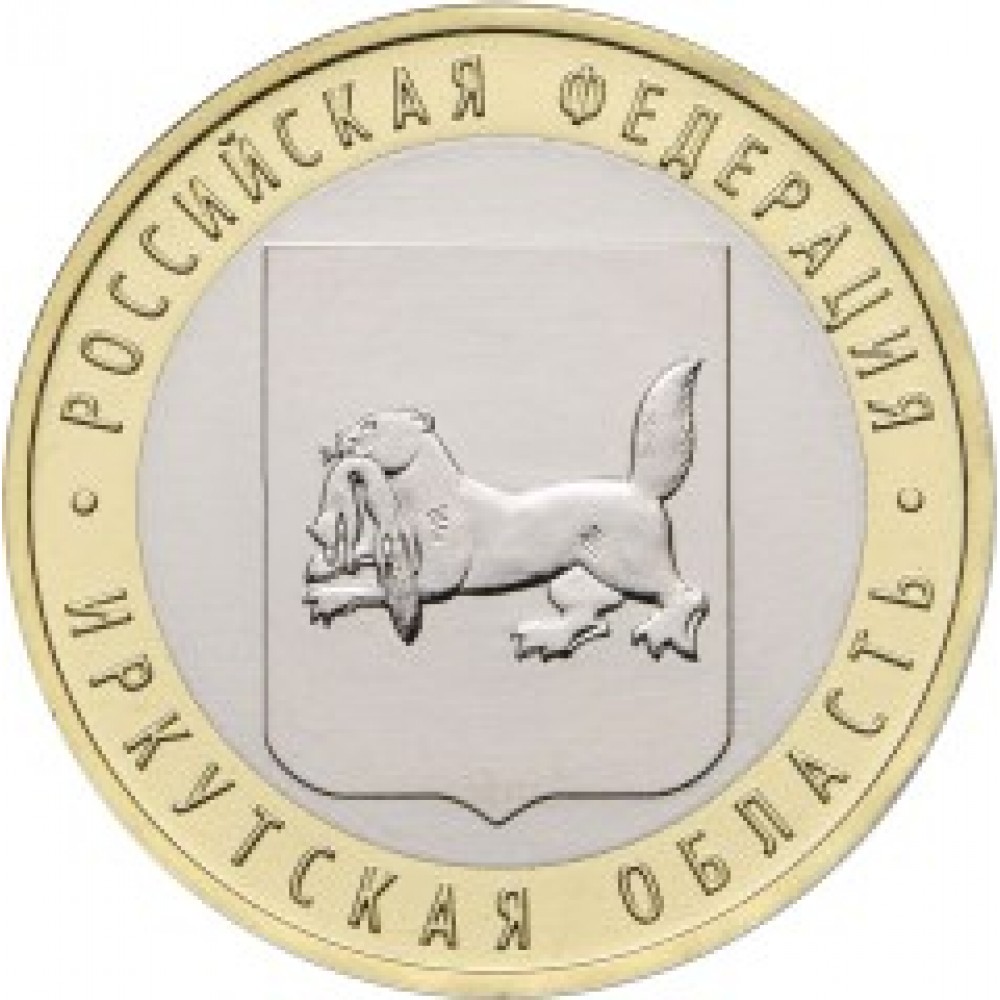 Реверс: в центре диска изображение герба Иркутской области, по окружности – надписи, разделенные двумя точками: вверху – "РОССИЙСКАЯ ФЕДЕРАЦИЯ", внизу – "ИРКУТСКАЯ ОБЛАСТЬ".