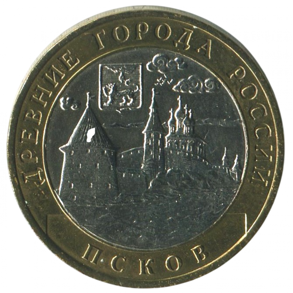Банк России за время своего существования успел выпустить множество юбилейных памятных монет имеющих разную степень ценности. Однако из числа современных недрагоценных экземпляров особенно интересными являются десятирублёвые монеты, посвященные древнерусским городам. Начиная с 2002 года главное финансовое учреждение страны, регулярно выдавало на радость нумизматам те или иные коллекционные экземпляры, посвящённые ряду городов Российской Федерации. Так, 25 февраля 2003 года мир увиделамонета 10 рублей Псков.