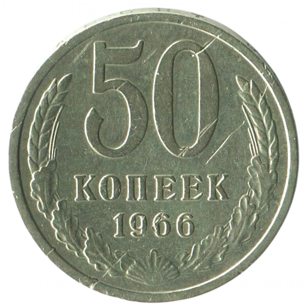 Гурт: вдавленная надпись «Пятьдесят копеек 1966».