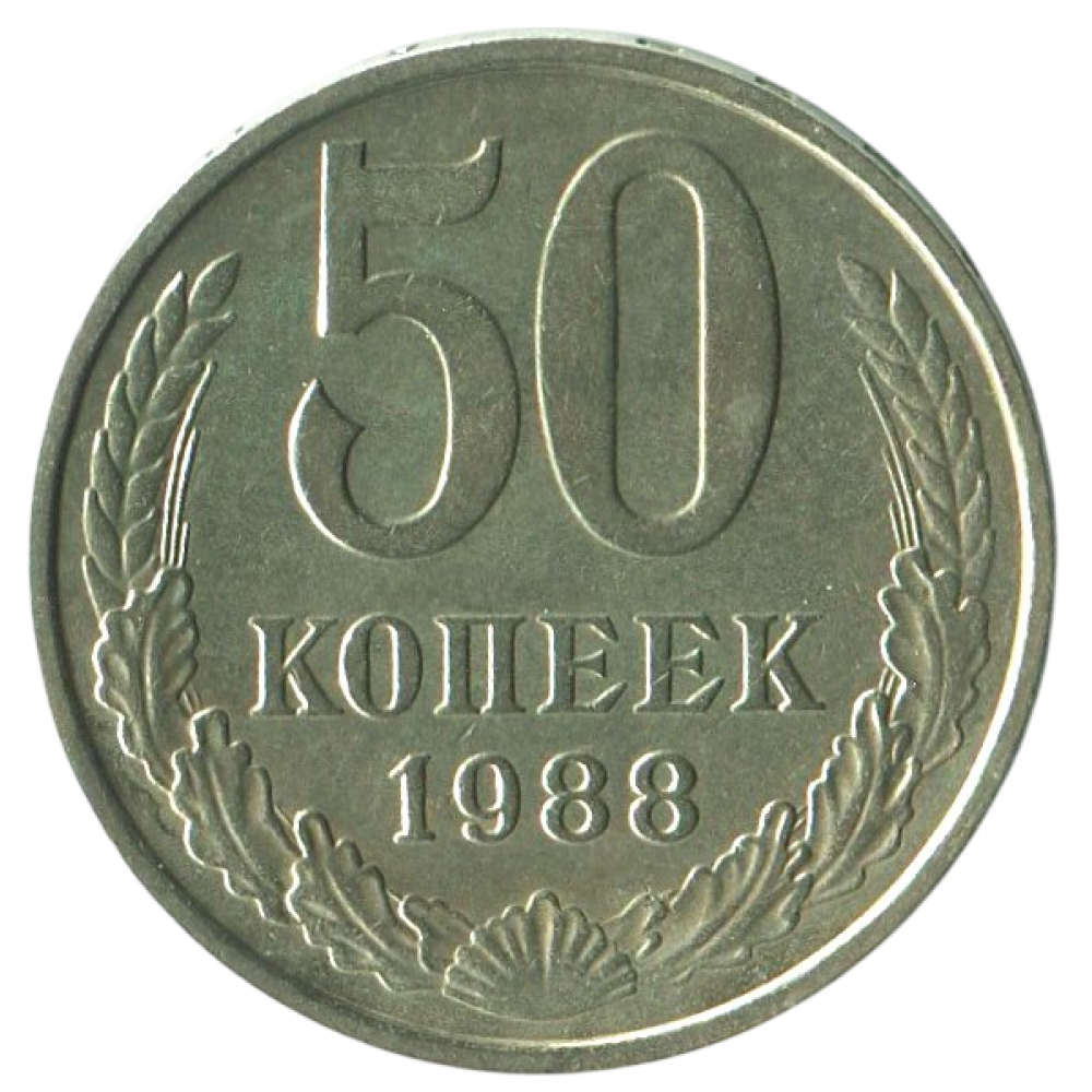 Гурт: вдавленная надпись «Пятьдесят копеек 1988».
