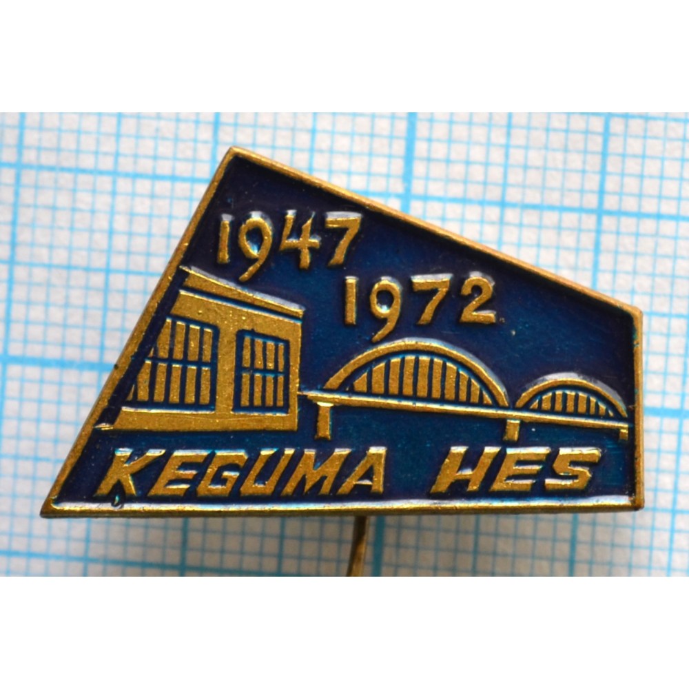 Значок Кегумская ГЭС , р. Даугава, 25 лет Восстановления, 1947-1972, Тяжелый, Иголка, Очень редкий
