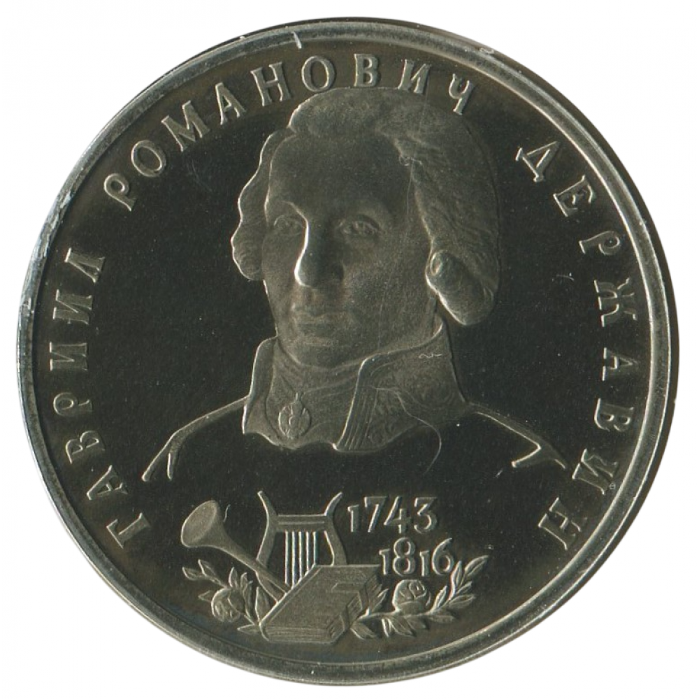1 рубль 1993 ЛМД 250-летие со дня рождения Г.Р. Державина, Proof