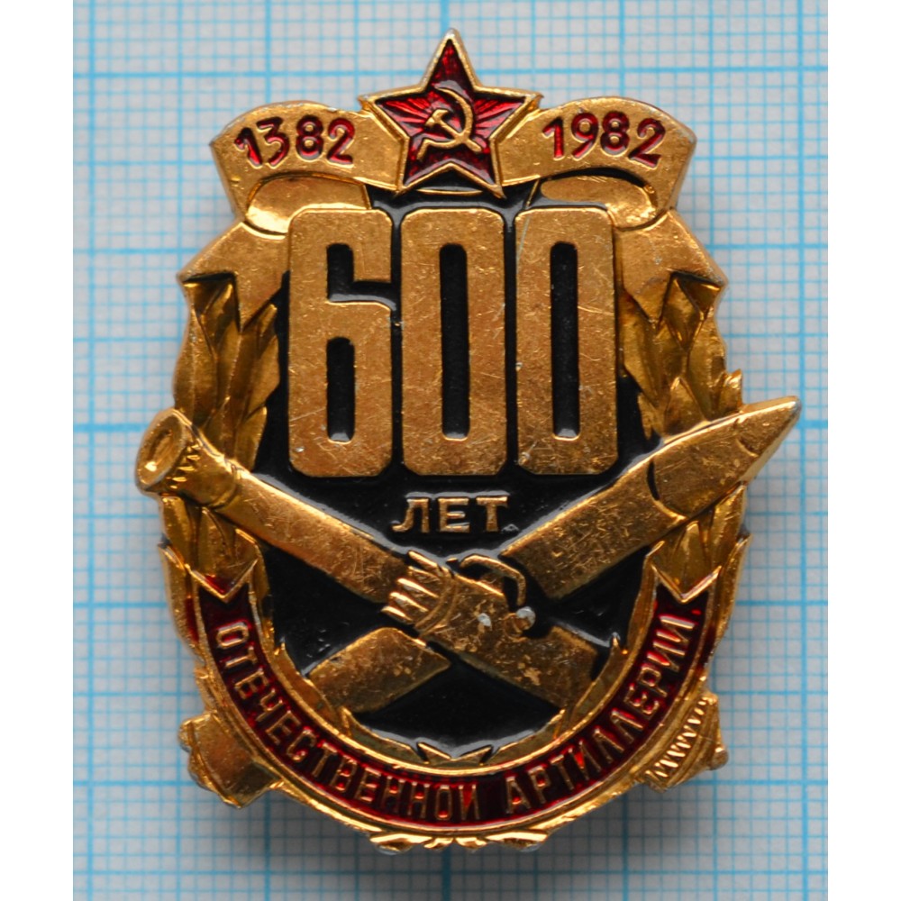Нагрудный знак 600 лет Отечественной артиллерии 1382-1982, Заколка, Легкий,