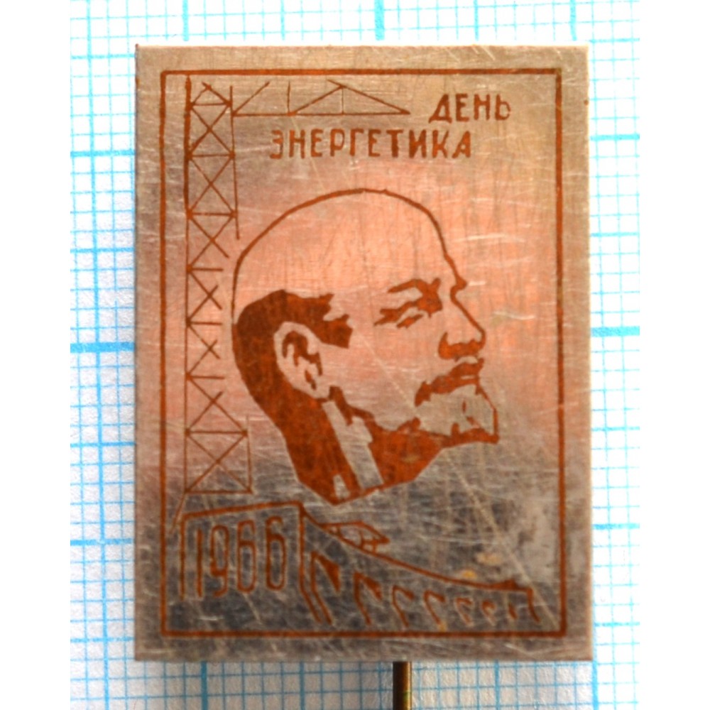Значок День энергетика, 1966 год, Ленин, Тяжелый, Иголка, Редкий