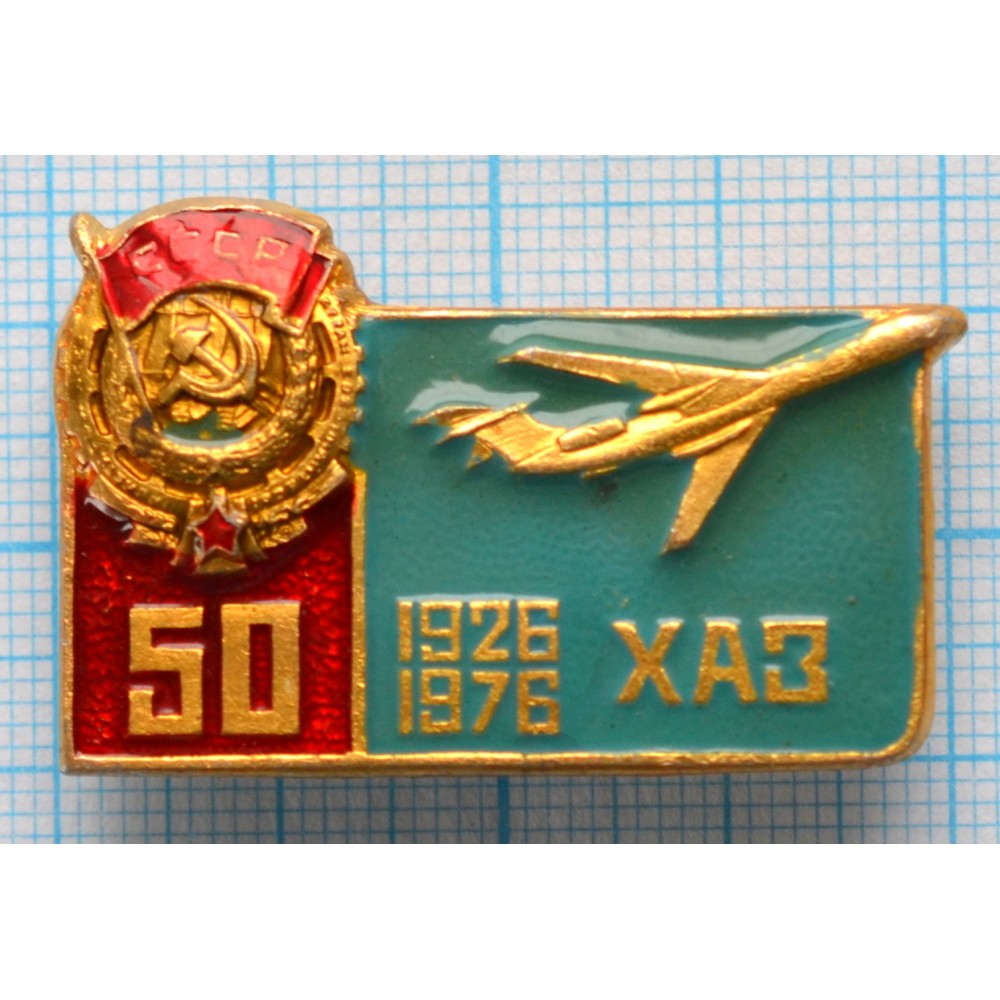 Значок 50 лет ХАЗ 1926-1976, Харьковский авиационный завод, Голубой