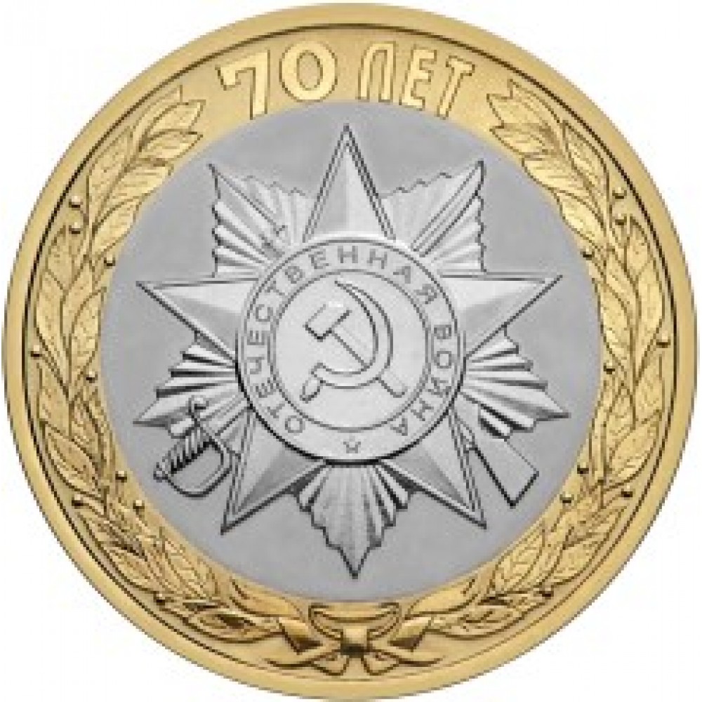 10 рублей 2015 СПМД 70 лет Победы в ВОВ Эмблема, UNC (из мешка)