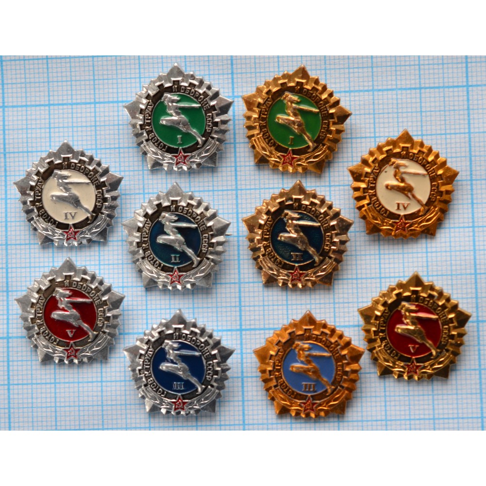 Набор значков Готов к труду и обороне СССР, Серебристые + Золотистые,