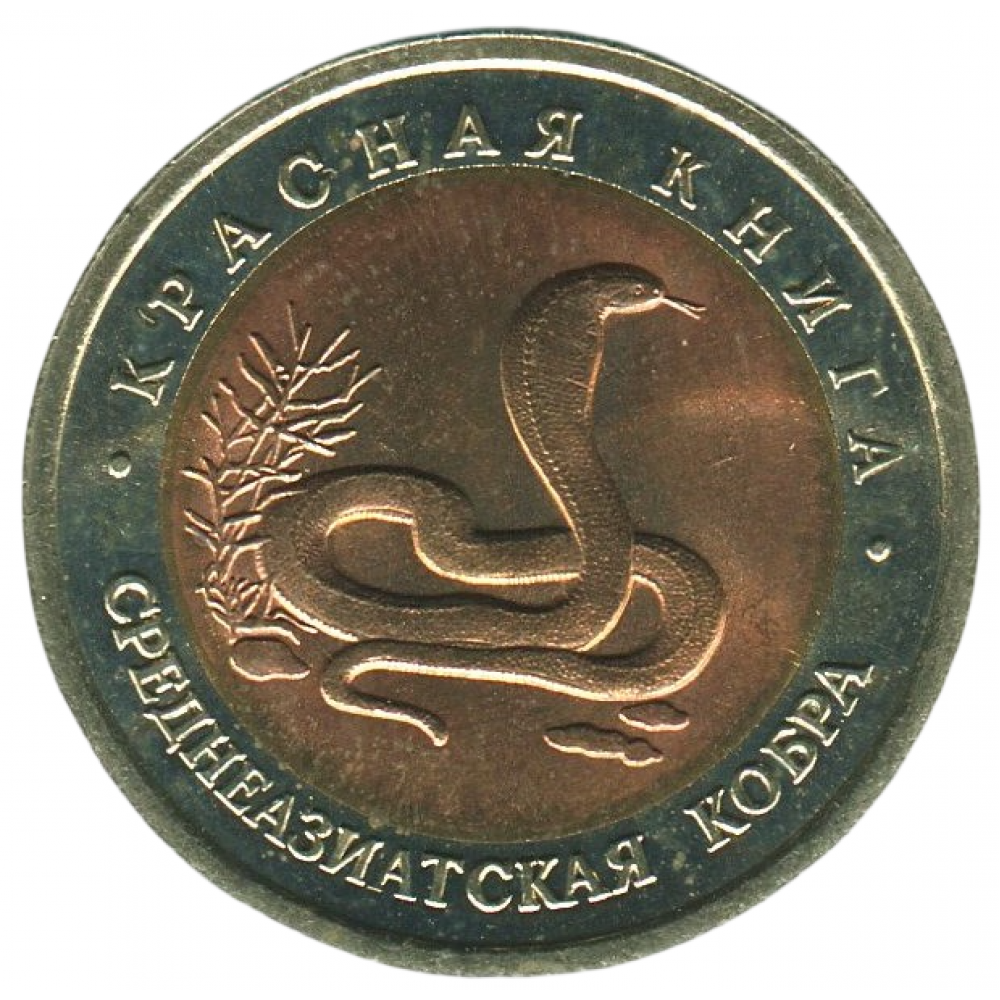 Монета, 10 рублей 1992, Красная книга, Среднеазиатская кобра