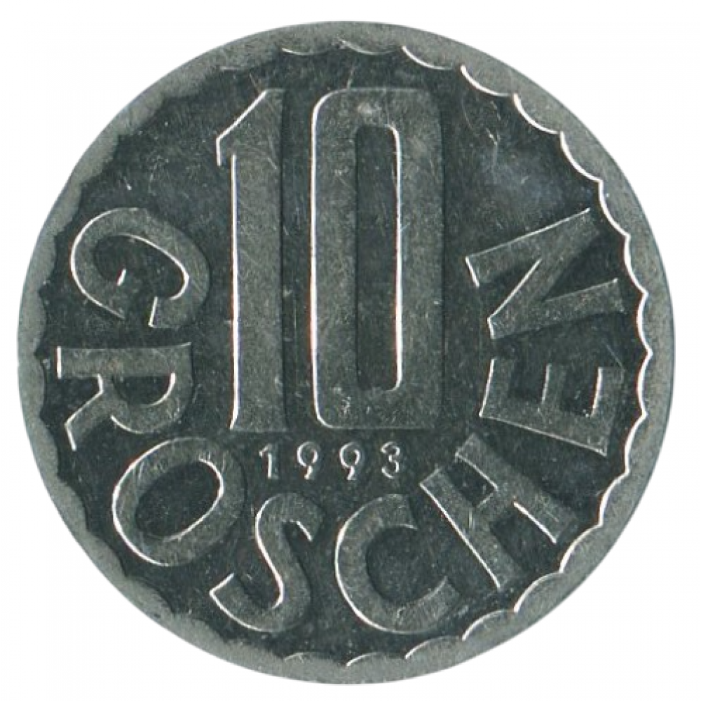Монета, 10 грошей 1993, Австрия, 10 groschen 1993, Austria, из оборота, 10 грошей, 1993, 10, грошей, 10 groschen, groschen