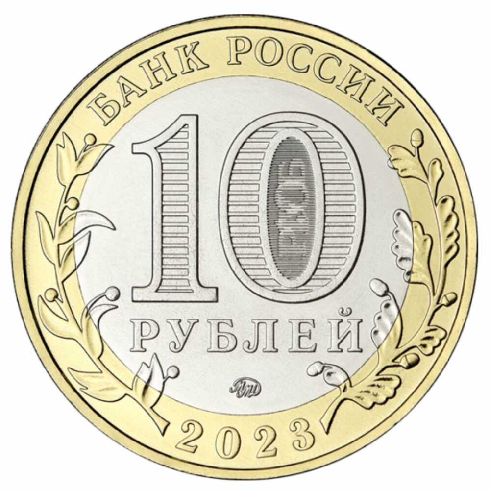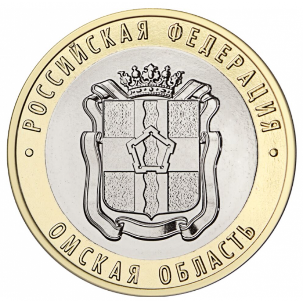 Последняя монета 2023 года — 10 рублей «Омская область» — выпущена в рамках серии «Российская Федерация» («Регионы России»). на оборотной стороне дензнака отчеканено рельефное изображение герба Омской области.