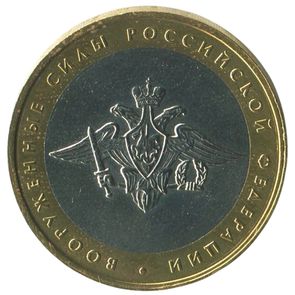 в центре - эмблема вооруженных сил Российской Федерации, по окружности - надпись: "ВООРУЖЕННЫЕ СИЛЫ РОССИЙСКОЙ ФЕДЕРАЦИИ".