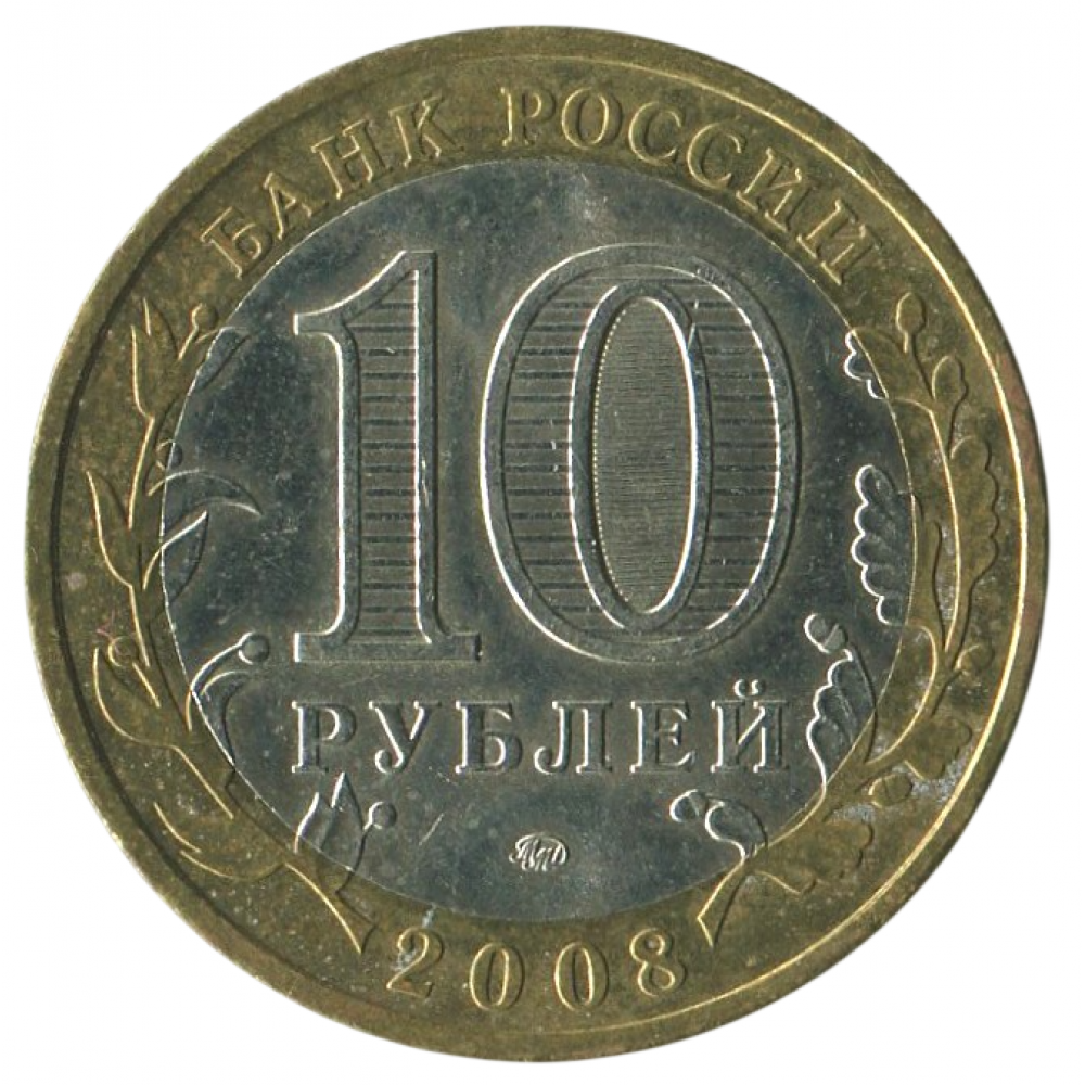 в центре диска – обозначение достоинства монеты «10 РУБЛЕЙ». Внутри цифры «0» – скрытые, видимые поочередно при изменении угла зрения изображения цифры «10» и надписи «РУБ». В нижней части диска – товарный знак монетного двора. В верхней части кольца по окружности – надпись: «БАНК РОССИИ», в нижней – дата «2007», слева и справа – стилизованные ветви растений, переходящие на диск.
