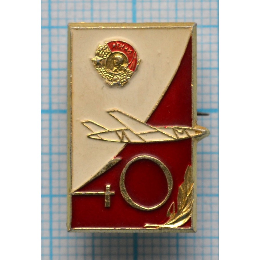Значок Авиационный завод 40 лет, Орден Ленина, Красная эмаль